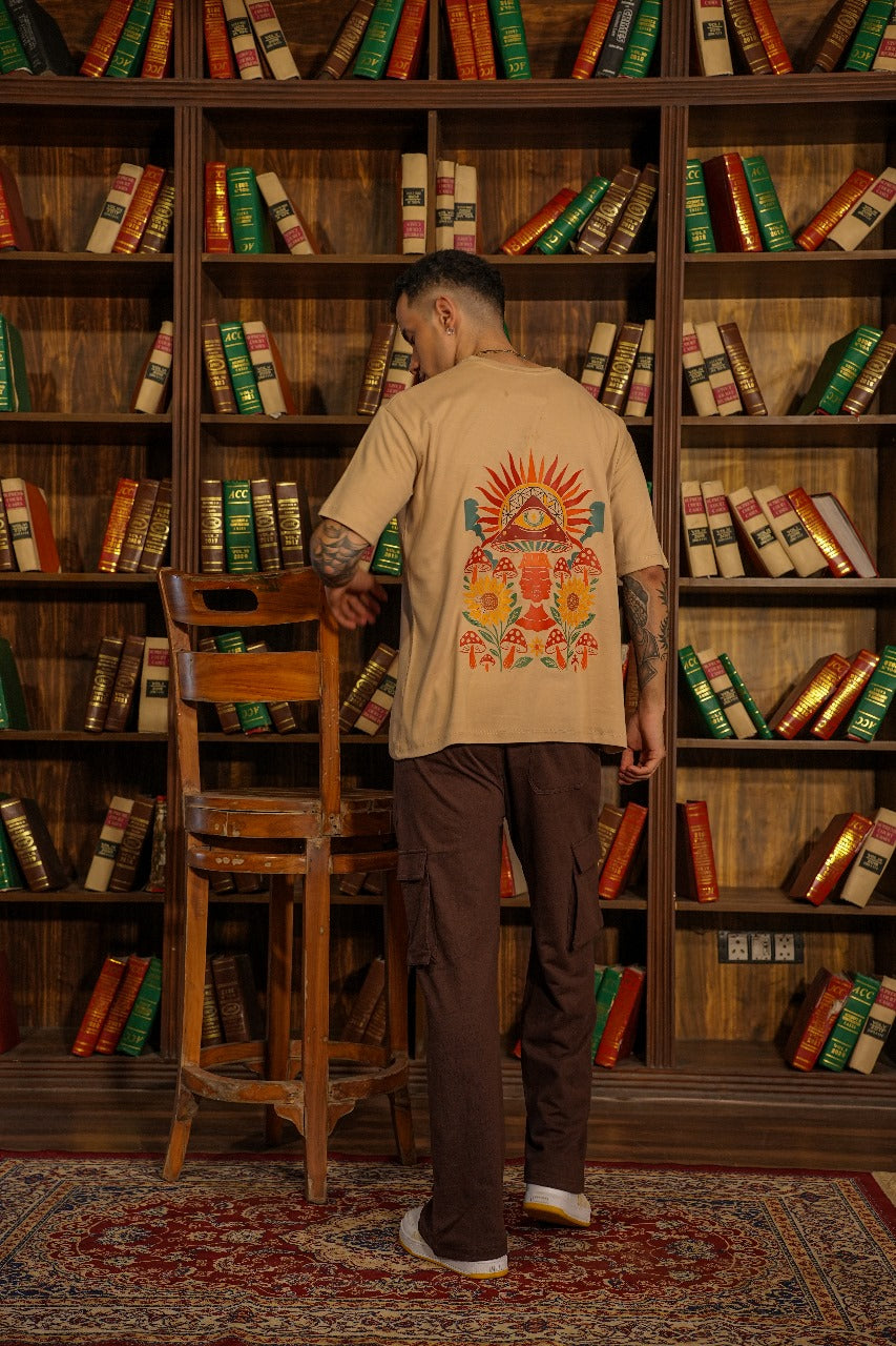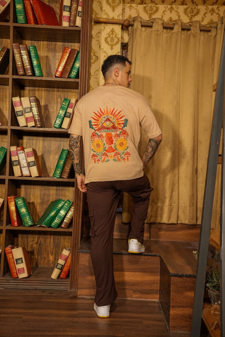 Men Beige Mystic Folk Garden Graphic Tee