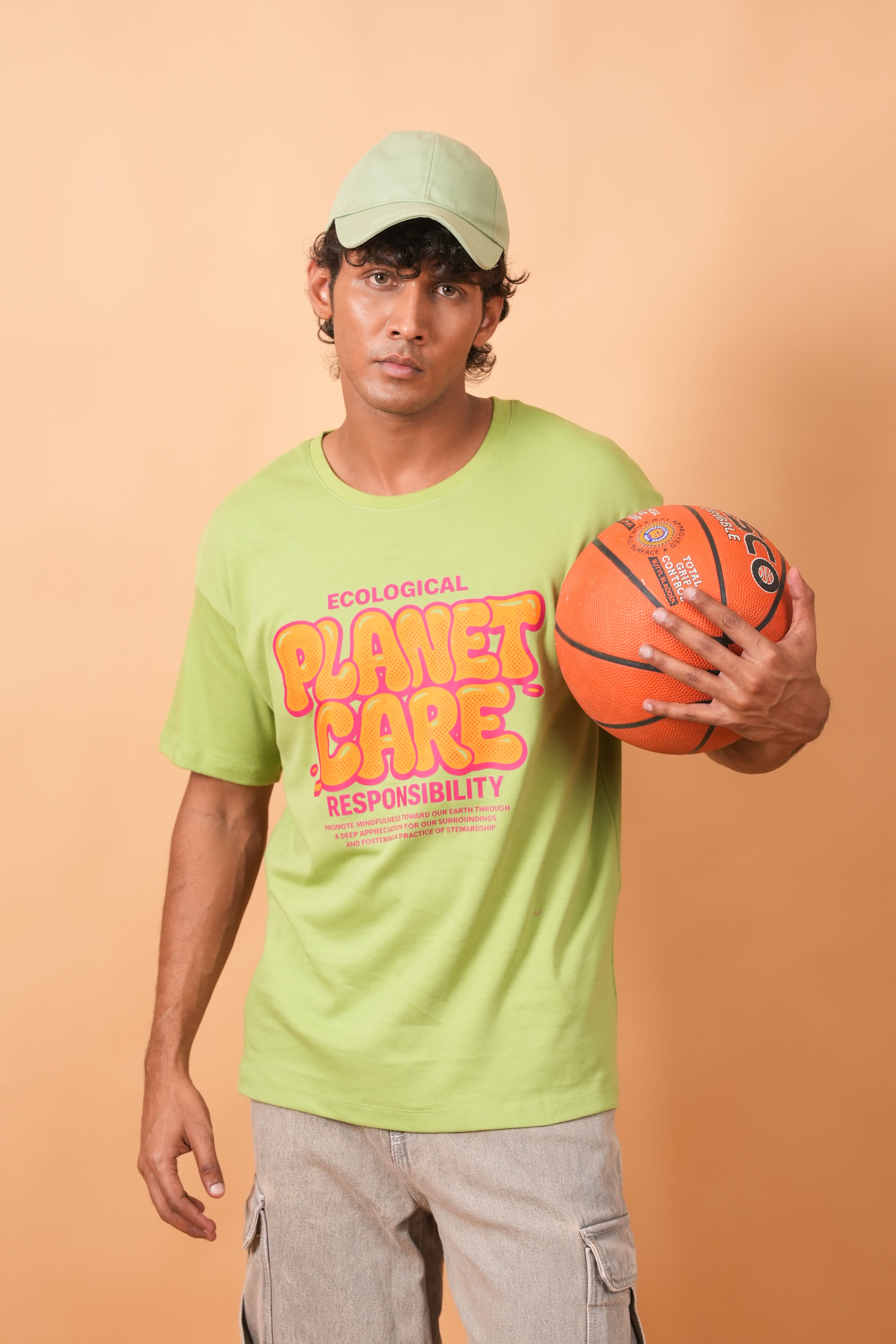 Bright and informative t-shirt promoting ecological responsibility with fun retro-styled type.