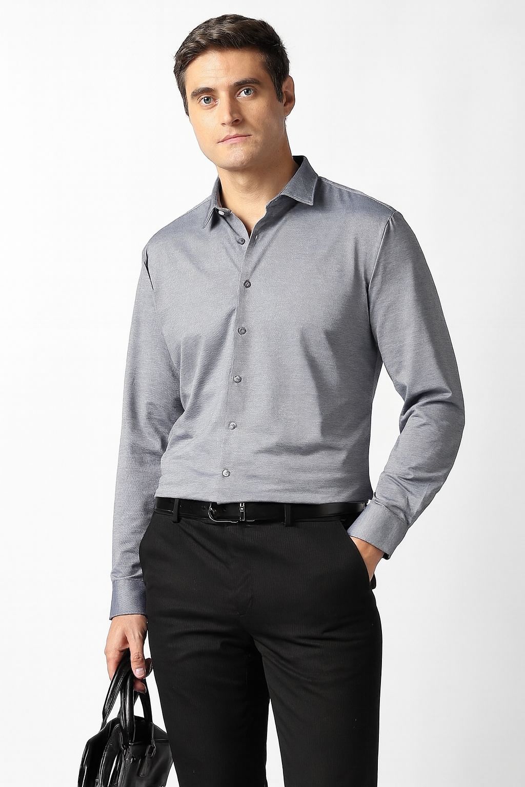 Solid Black Cotton-Blend Short Sleeve Shirt