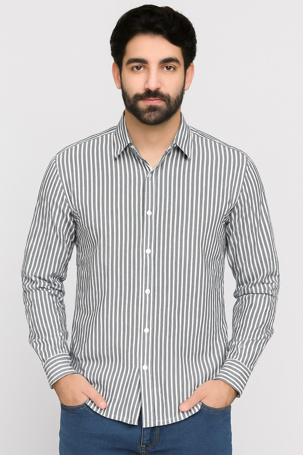 A timeless vertical-striped shirt crafted from premium yarn-dyed cotton, ensuring long-lasting colour and a crisp, structured look. The stripes create a clean, elongating effect, making it suitable for both casual and semi-formal wear. Designed with a classic spread collar, full sleeves, and a button-front placket, this shirt offers breathable comfort and effortless daytime styling. Perfect for daily office wear, outings, or layering under jackets.