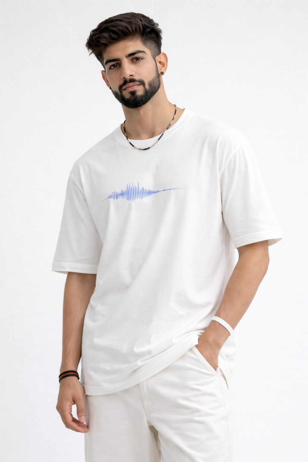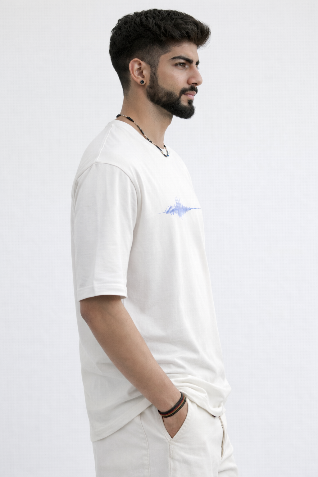 Minimalist tee featuring a soundwave design and 'Signal Lost 001' text at the hem.