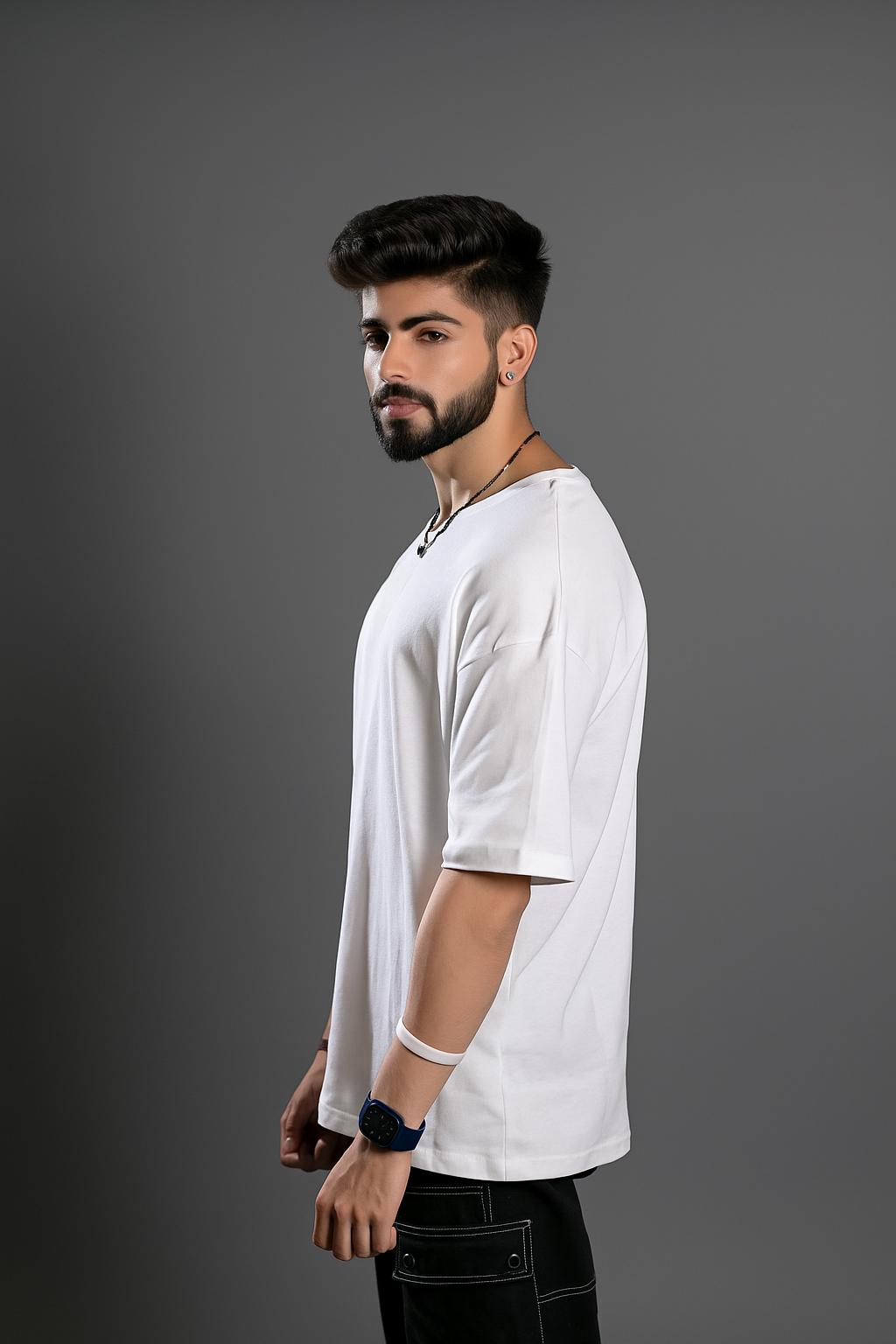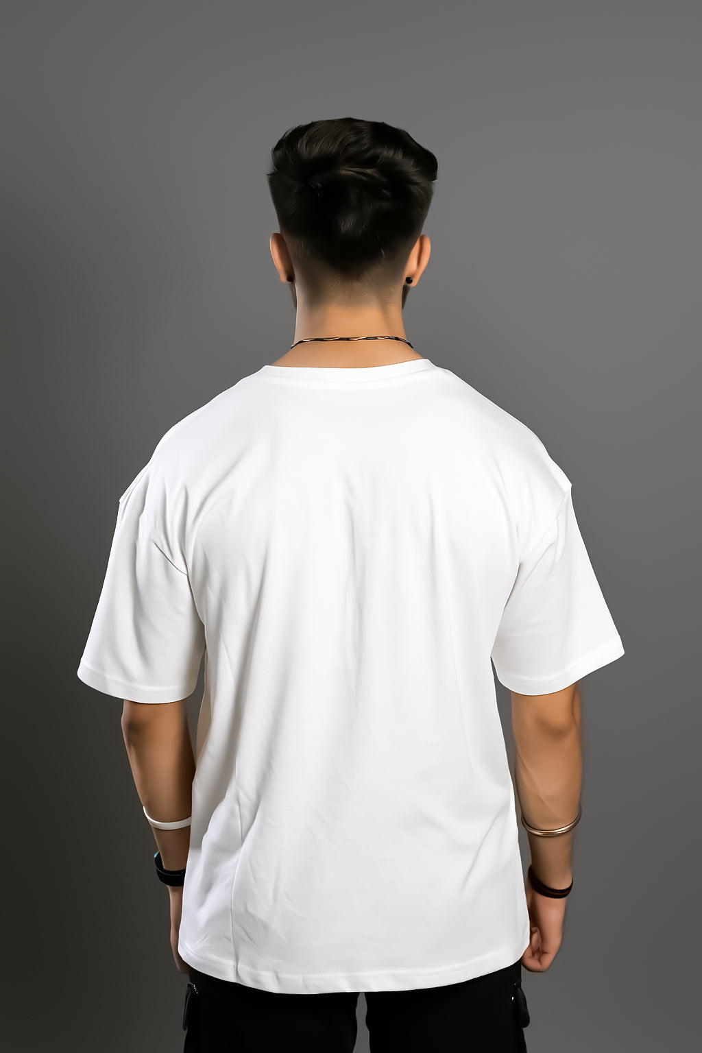 Playful oversized tee with cartoon character and bold 'Social Extrovert' text on the back.