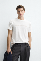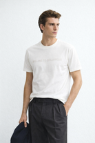 Minimalist tech-core off white tee with digital readout: 'Willing To Disappear'. Clean futuristic style for everyday wear.