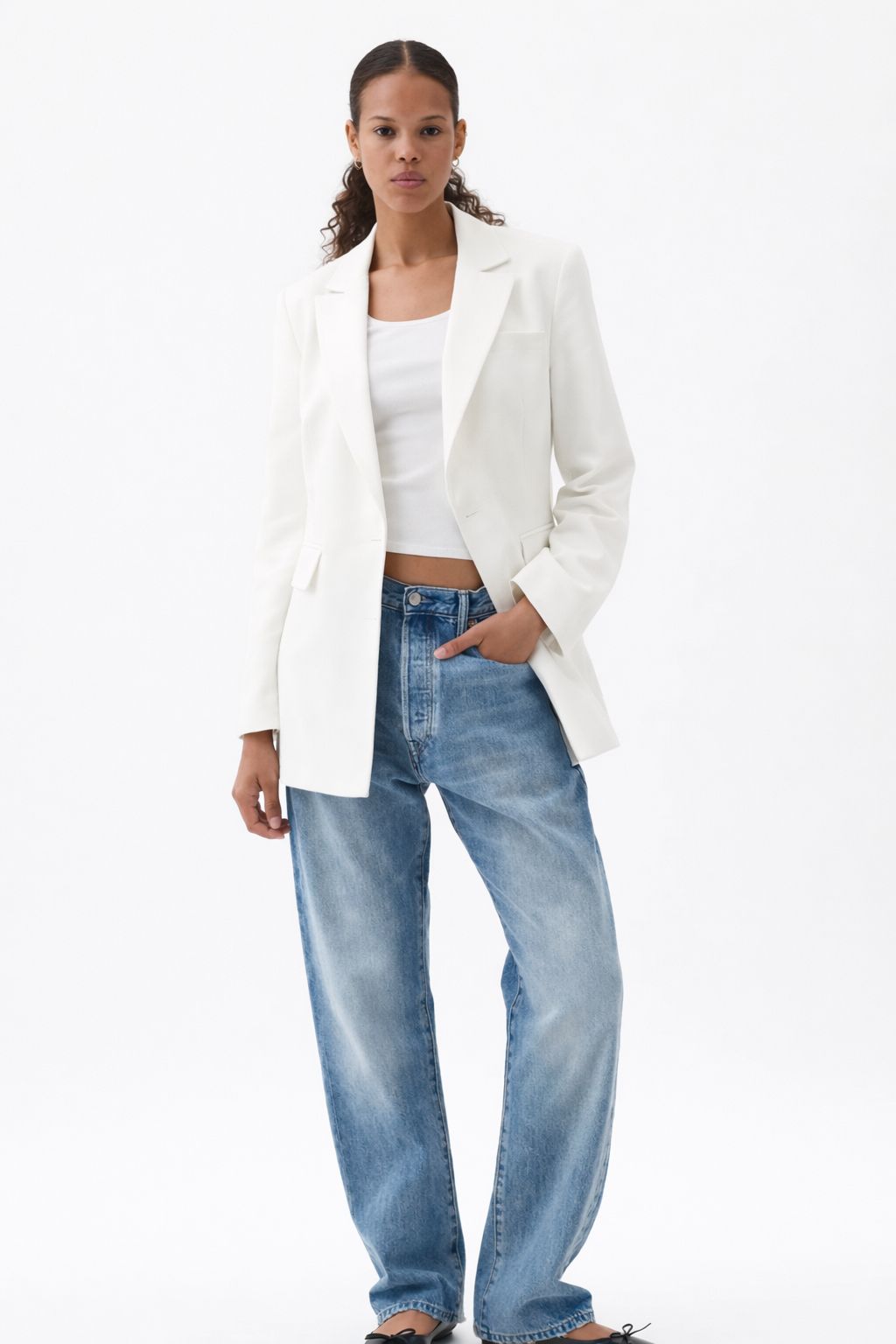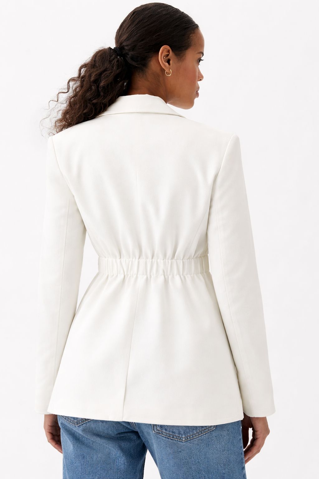 A tailored dark green blazer with a structured silhouette and waist-defining fit, designed for a polished and modern look suitable for both work and smart-casual wear.Ideal for professional wear or smart-casual outfits—pairs well with trousers, skirts, or dresses for a refined, modern look.