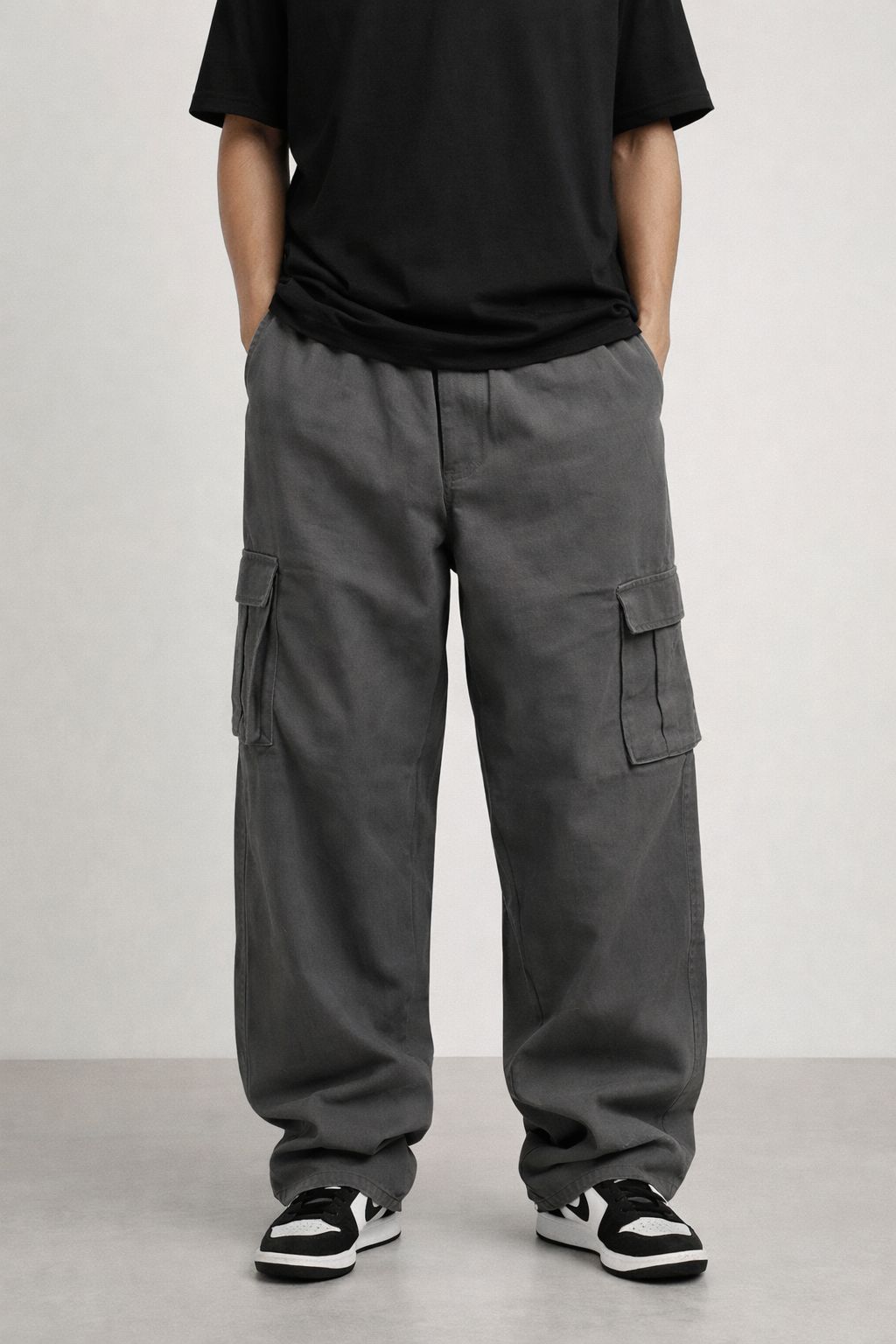 Designed for everyday comfort and utility, these Grey cargo pants feature a relaxed fit with functional side pockets for a practical yet stylish look. Crafted from breathable, durable fabric, they offer ease of movement while maintaining a structured silhouette. The elasticated cuffs add a modern touch, making them perfect for casual wear, travel, or street-style outfits.