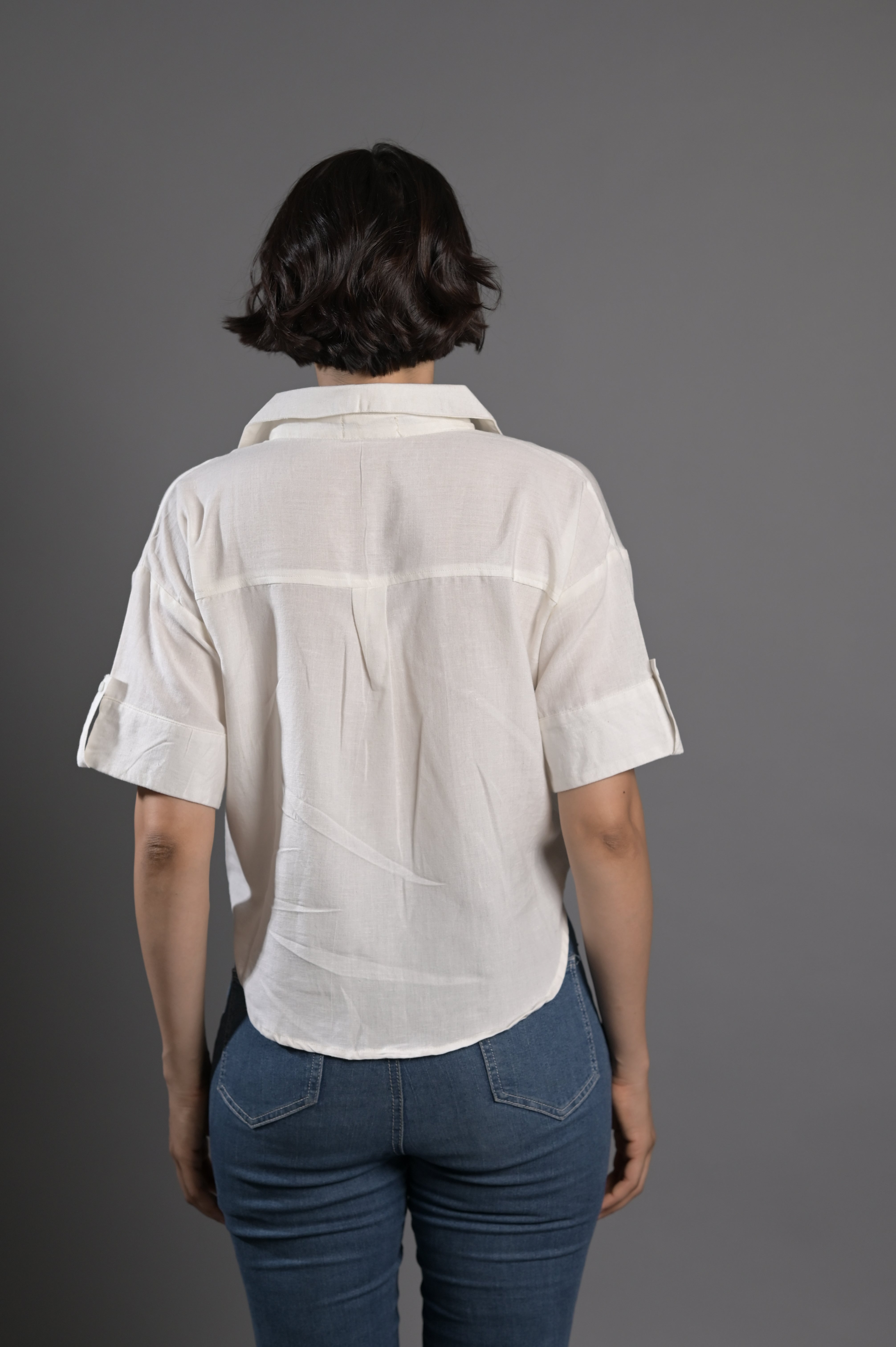 Women Linen Short Sleeve Shirt
