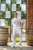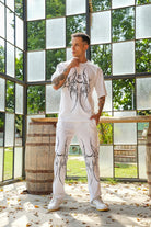 oversized co-ord set with graffiti-style abstract black print across the t-shirt and pants. Bold and artistic, this streetwear set is designed for those who like to stand out in casual and trendy fits.
