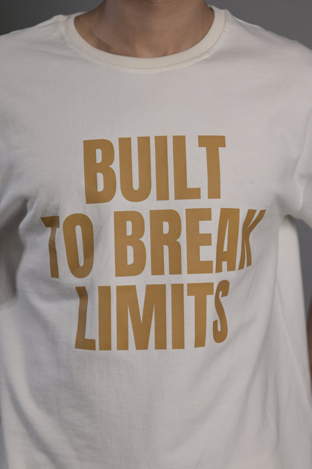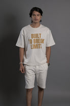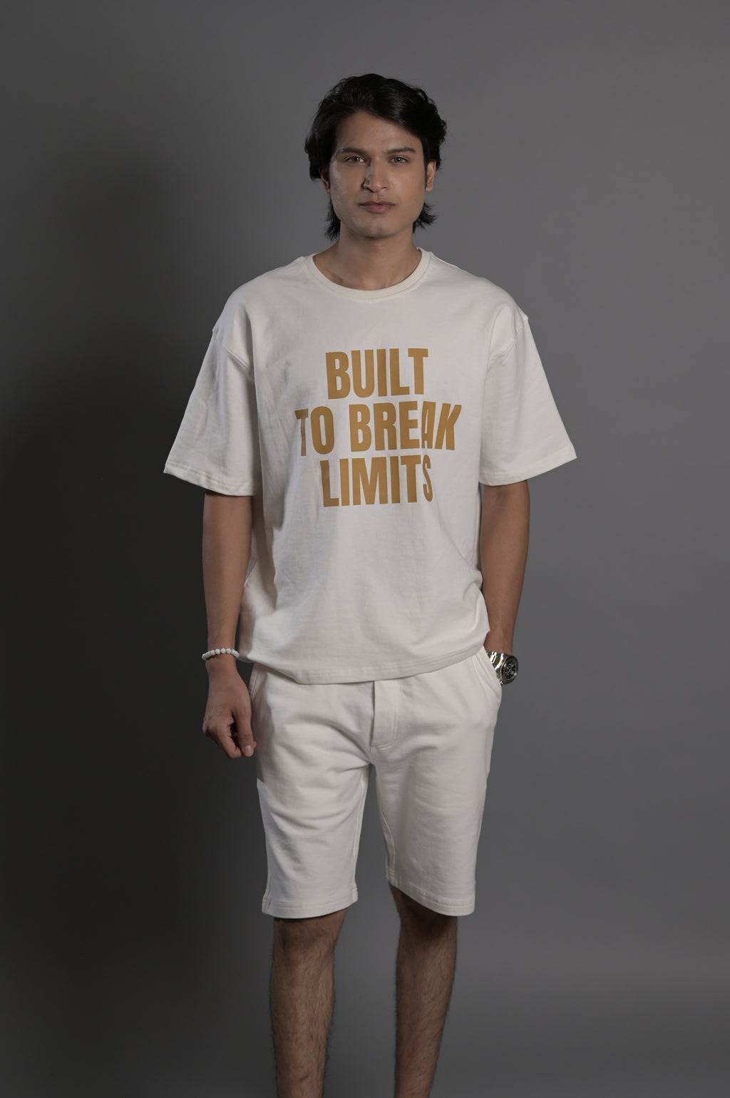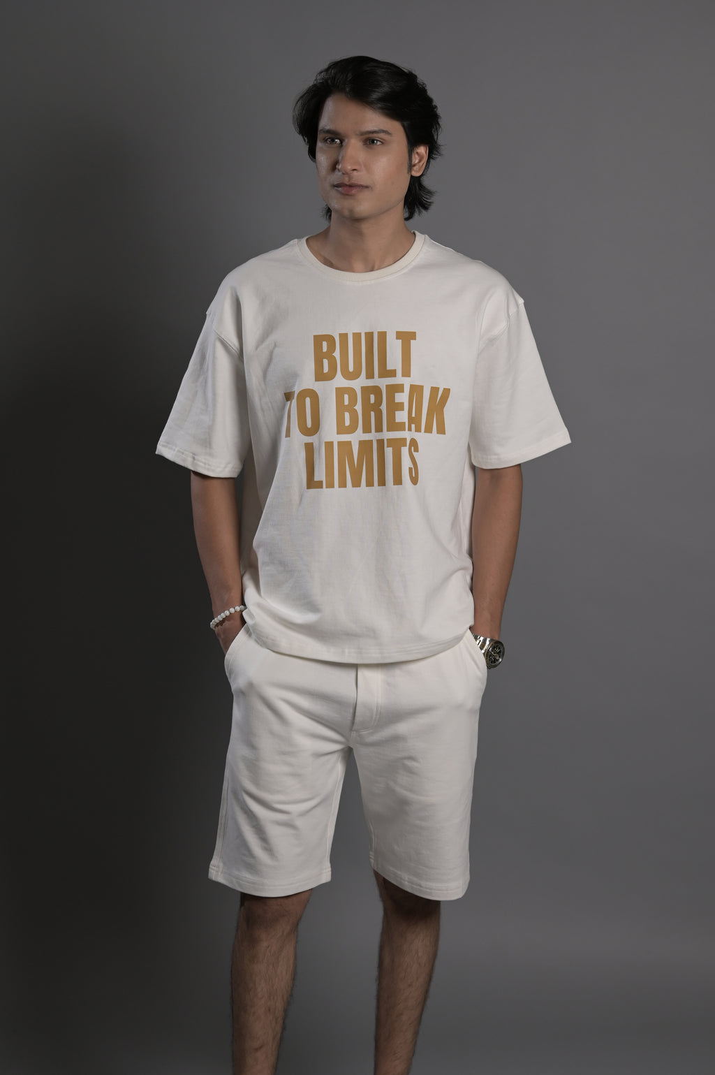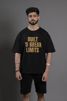 Bold black co-ord set with 'Built to Break Limits' text. Empowering street style statement.