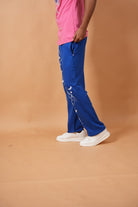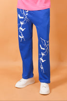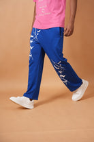 Sleek joggers detailed with striking white lightning and bat motifs. Designed with a drawstring waistband and tapered fit, combining comfort with an edgy street-inspired aesthetic.