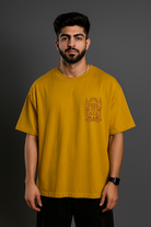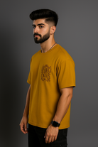 Subtle mustard tee with front chest print 'Feel The Bliss' in soft floral vintage font.