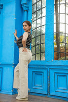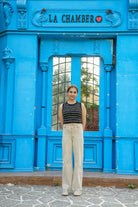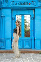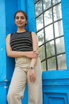 A cropped ribbed knit tank top designed with timeless horizontal stripes for a casual yet chic vibe. Its cotton-blend fabric ensures breathability and comfort, while the slim fit flatters the waistline. Easy to style with denim, skirts, or layers, it’s a versatile essential for summer and everyday wear.