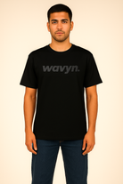 The WAVYN Black Statement Tee is crafted for everyday comfort with a bold, minimal aesthetic. Featuring a clean silhouette, this unisex tee is made from soft, breathable cotton blend fabric designed for all-day wear. The chest is printed with the signature wavyn. logo in a sleek tonal finish, giving the piece a modern streetwear vibe.